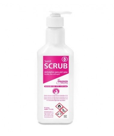 Clorhexidina acuosa coloreada 4%, Sanit Scrub. Botella de 500ml con dosificador