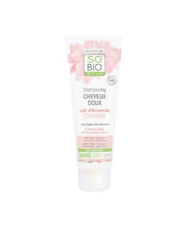 Champú Suave leche almendras 250ml. (SO´BIO ETIC) Limpia suavemente el cabello. Fibras capilares hidratadas. Brillo natural. Suavidad diaria. Cabello sano en 10...