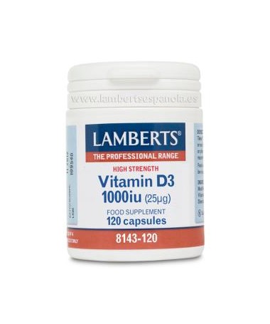 Vitamina D3 1000ui 120cap. (LAMBERTS) La vitamina D es esencial para unos huesos y dientes saludables, y también es importante para un sistema inmune en buen estado...