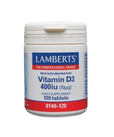 Vitamina D3 400ui 120comp. (LAMBERTS) La vitamina D es esencial para unos huesos y dientes saludables, y también es importante para un sistema inmune en buen estado...