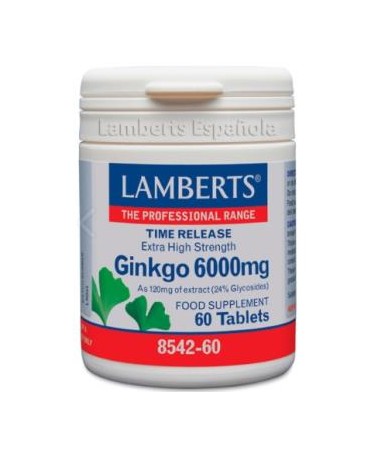 Ginkgo Biloba 6000 120mg. 60comp. (LAMBERTS) El extracto que contiene es de alta potencia y de liberación sostenida (se libera gradualmente a lo largo de...