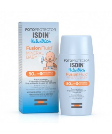 Fotoprotector ISDIN Fusion Fluid MINERAL SPF 50+, el primer filtro físico que se funde con tu piel. Fotoprotección invisible para la piel sensible, atópica o...