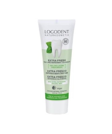 Dentifrico Extra Fresco menta daily care 75ml. (LOGONA)  Dentífrico ligeramente espumante para una limpieza eficaz de los dientes y ayuda a mantener unas encías...