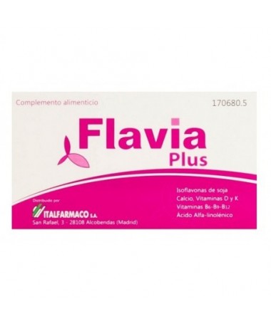 Flavia es un complemento alimenticio que asocia extracto de soja con un contenido de 40% de isoflavonas de soja, calcio y vitamina d, así como un complejo de tres...
