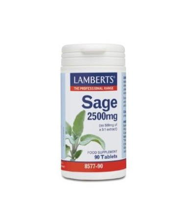 Salvia 2500mg. 90comp. (LAMBERTS) La salvia resulta de utilidad para las mujeres durante la menopausia. Apto para veganos y vegetarianos.