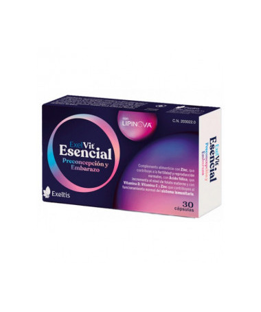 Complemento alimenticio formulado con Lipinova, zinc, ácido fólico, ácidos grasos Omega-3, vitaminas y minerales. Sin gluten, lactosa o sacarosa.
