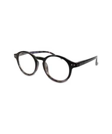 Farline Gafa de Presbicia Pirineo con montura de pasta transparente con estampados azules y marrones. Lente redondeada. Presbicia de 1 a 3.5