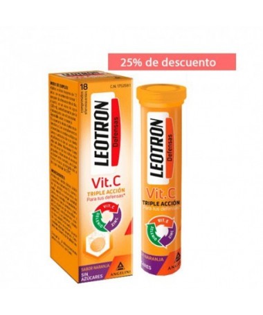 Leotron Vitamina C 18 comprimidos efervescentes ejerce una triple acción que ayuda a tus defensas. Este complemento alimenticio con Vitamina C, Zinc y Selenio ayudan...