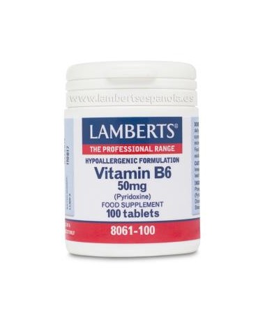 Vitamina B6 50 mg. 100 comp. (LAMBERTS) Esta vitamina contribuye a la función psicológica normal, la función normal del sistema inmune y sistema nervioso, a la...