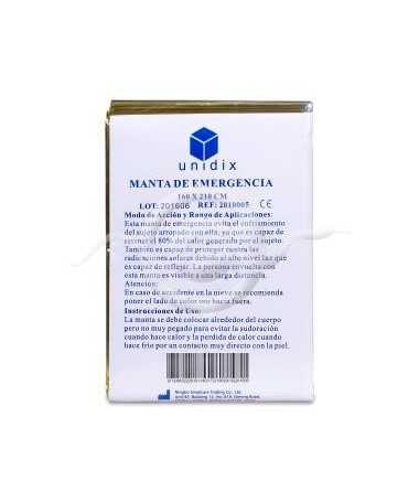 Manta térmica oro/plata unidix 1 ud. de emergencia de 160 x 210 cm. Se utiliza para protección contra el frío y el calor.