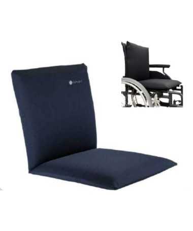 Cojín para silla de ruedas formado por dos hemipartes de densidad/dureza diferenciada, siendo la dureza de la parte del asiento mayor que la parte del respaldo. Este...