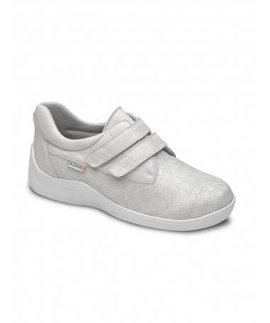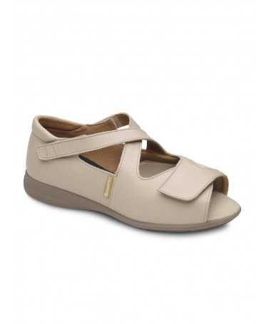 Zapatilla cerrada, que se abre totalmente para una mayor comodidad. Con cierre de velcro en empeine y talón. Zapatilla apta para personas con problemas en los pies....