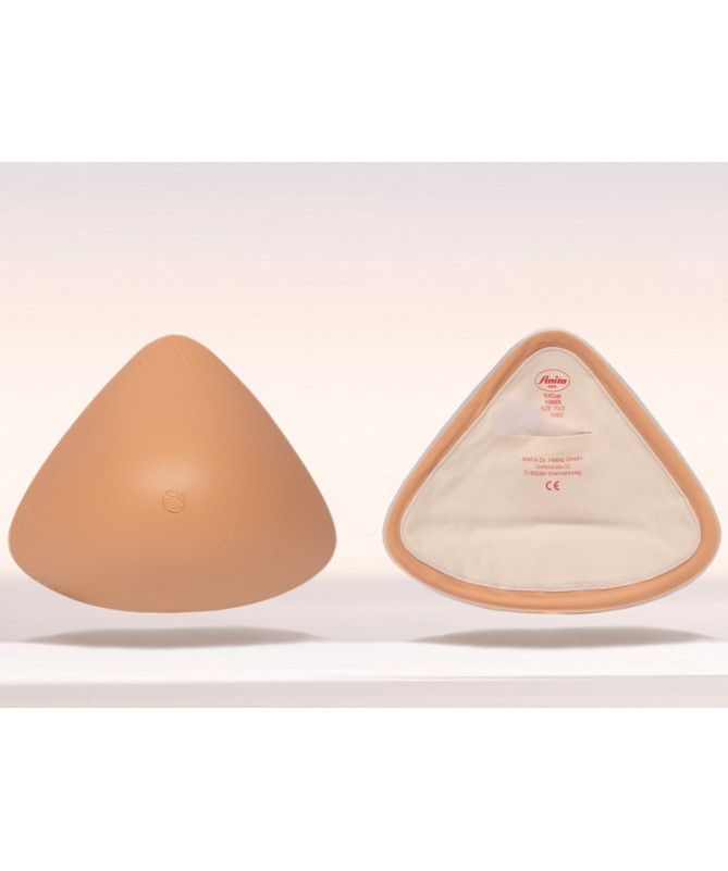 Prótesis bilateral TriCup 1089X de Anita Care. La parte exterior es de silicona y la interior de microfibra. Puedes añadirle más o menos vellón clínico sin añadir peso a la prótesis. Es un 25% más ligera que las prótesis de peso normal.
