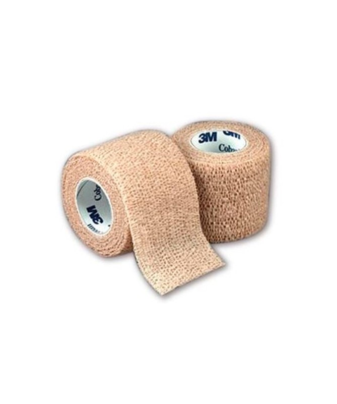 Venda cohesiva transpirable, resistente al agua, elástica y conformable, que se adhiere sobre sí misma sin necesidad de esparadrapo e imperdibles.