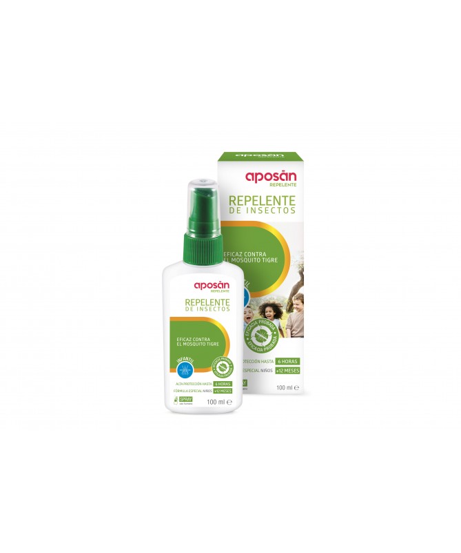 Aposán Repelente Infantil Spray +12m 100 ml para proteger la piel de los niños frente a las picaduras de los mosquitos. Ofrece hasta seis horas de protección en el exterior cuando los niños realizan sus actividades diarias.