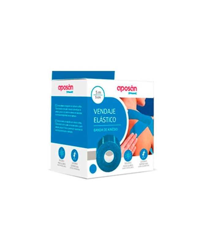Aposan Dynamic vendaje elástico Azul 5m x 5cm es una cinta que se aplica (generalmente lo hace el fisioterapeuta o el médico) sobre los músculos.