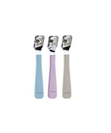 Cabezal metálico con curvatura especialmente estudiada para minimizar el peligro de corte. Elimina callos y durezas de forma eficaz.