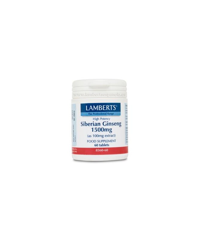 Ginseng Siberiano 1.500mg. 60comp. (LAMBERTS)  Se utiliza para combatir el estrés y la fatiga, pero lo más habitual es utilizarlo como agente preventivo que para la recuperación. Apto para veganos y vegetarianos.