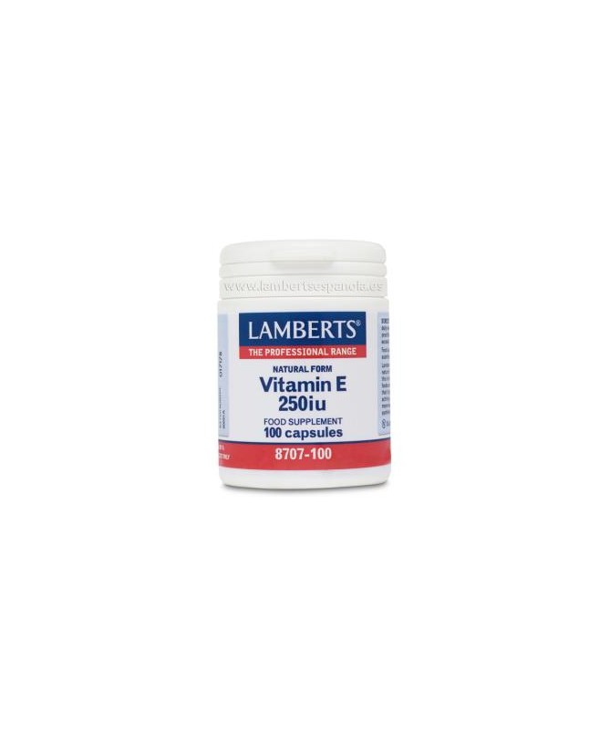 Vitamina E Natural 250 u.i. 100 cap. (LAMBERTS)  La Vitamina E protege a cada célula del organismo contra el estrés oxidativo causado por los compuestos reactivos llamados “radicales libres”.