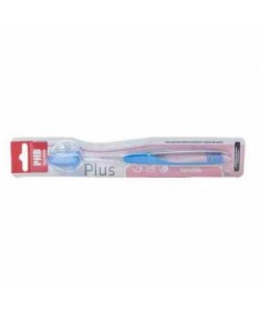 Cepillo dental con filamentos ligeramente rígidos, cabezal de pequeño tamaño y mayor.