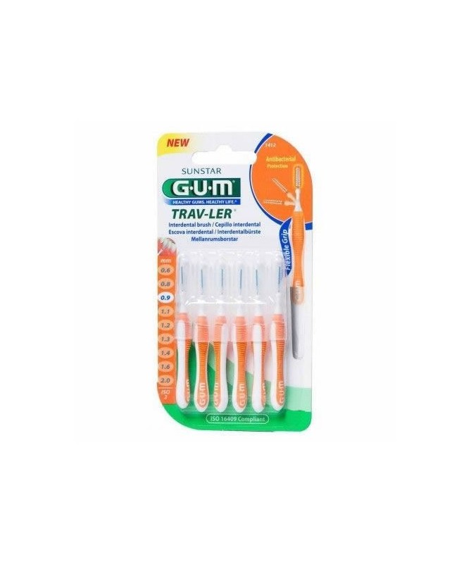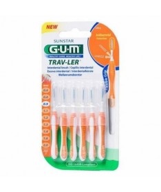 Tamaño adecuado a espacios interdentales de hasta 0,9 mm según norma ISO 2-Presentación: un blister que contiene 6 cepillos interdentales + 6 capuchones.