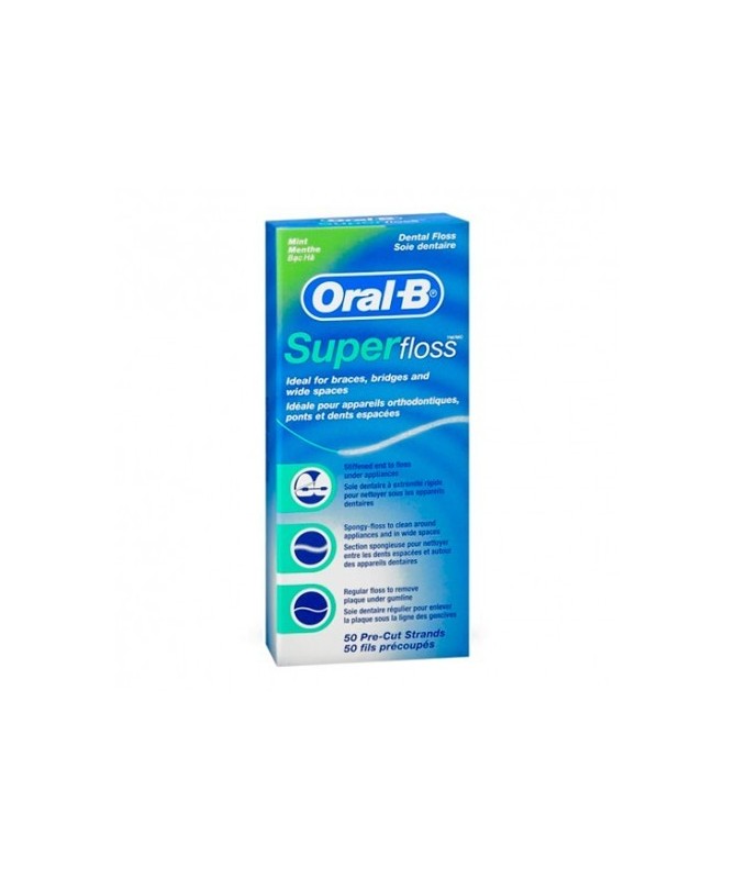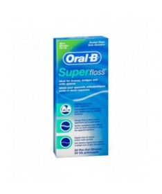 La seda dental Oral-B Super Floss aporta una solución suave y eficaz para facilitar la limpieza de los aparatos dentales, al facilitar la inserción bajo puentes y ortodoncia.