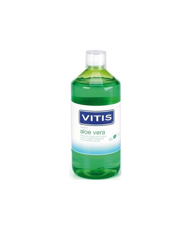 El colutorio de Aloe Vera de Vitis limpia de forma eficaz tus dientes, a la vez que los protege de caries y cuida tu boca y encías.