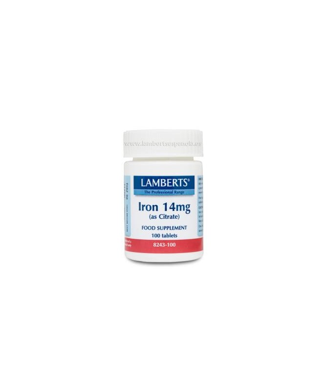 Hierro 14 mg.citrato 100 comp. (LAMBERTS)  Contribuye a la reducción del cansancio y la fatiga, y es muy recomendable para cualquier adulto, en especial las mujeres en edad menstrual.