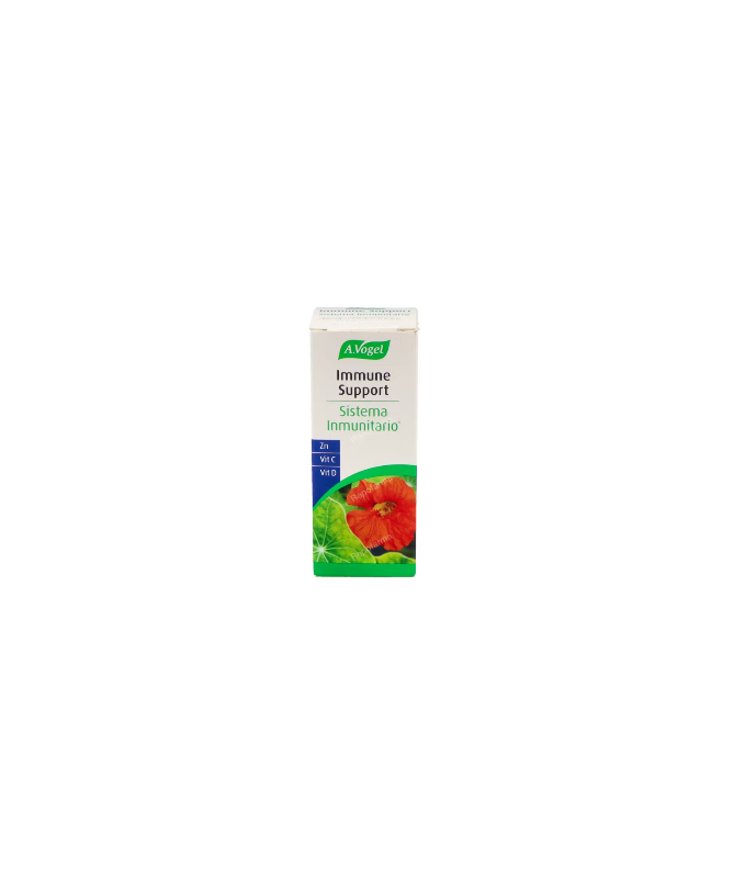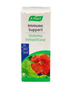 IMMUNE SUPPORT 30COMP: descripción y características basadas en la información facilitada. Suplemento a base de Vitamina C natural procedente de la acerola, capuchina, Zinc (en forma de citrato), y Vitamina D El Zinc, la Vitamina C y la Vitamina D contribuyen a la función normal del sistema