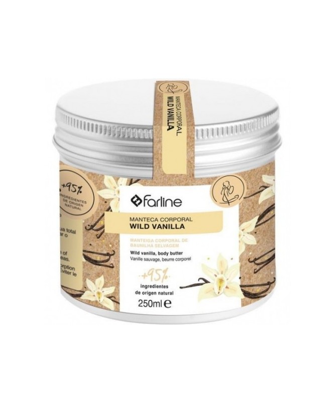 Farline Manteca Corporal Vainilla 250 ml con más de un 95% de ingredientes de origen natural.