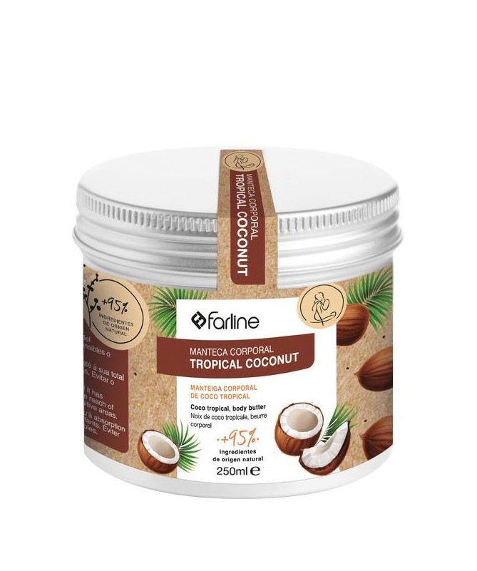 Farline Manteca Corporal coco 250 ml con más de un 95% de ingredientes de origen natural.