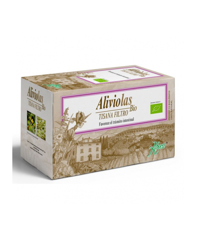 Aliviolas Bio Tisana resulta útil para favorecer el fisiológico tránsito intestinal gracias a la presencia de fitocomplejos de Sen, que ejerce una acción específica en el tránsito, Hinojo y Alcaravea, que favorecen la eliminación de los gases intestinales, Malva, Melisa y Regaliz, que ayudan a los procesos fisiológicos digestivos.