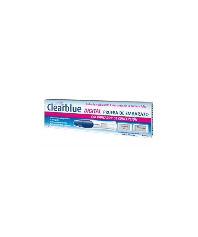 Prueba de embarazo Clearblue Digital con indicador de semanas.