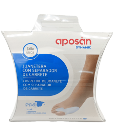 Cubre lateralmente la zona del juanete y alinea el primer dedo. Se sujeta
