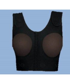 Sujetador mastctomía técnico especialmente diseñado para la cirugía de aumento mamario con transferencia de grasa. El pecho se sujeta con un fino tul preformado evitando que  se comprima.. El contorno, confeccionado con tejido de compresión, ejerce una presión localizada  rodeando la mama.  Los tirantes de velcro permiten ajustar el sujetador a la medida deseada.