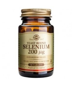 Selenio en Levadura 200mcg.50comp. (SOLGAR)  Levadura primaria con alto contenido en selenio. Tiene acción antioxidante y refuerza la respuesta del sistema inmunológico. Apto para veganos.