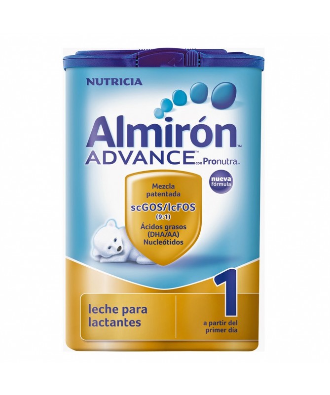 En Almirón, son expertos en nutrición infantil y están comprometidos a ayudarte para ofrecer a tu bebé la mejor alimentación desde el inicio de su vida, por eso recomiendan Almirón Advance 1 800g desde el primer día de vida. Algo que hace muy especial a Almirón Advance 1 800g son sus componentes y lo que aportan en una sola toma al bebé. Gracias a la mezcla patentada deAlmirón Advance 1 800g rica en GOS/FOS (prebióticos), se consigue favorecer a la flora intestinal y las defensas naturales del bebé.