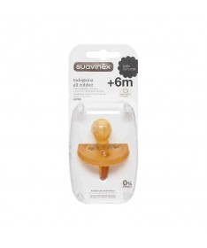 Chupete con tetina ortodóntica, reúne todas las características necesarias para facilitar el correcto desarrollo de la boca del bebé.