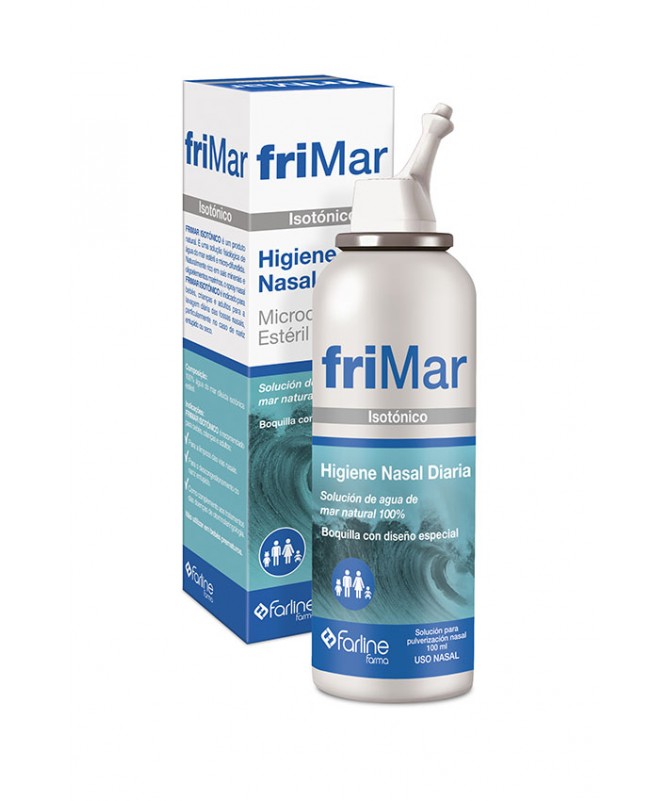 Farline Frimar Isotónico 120ml es una solución nasal a base de agua isotónica de agua de mar para la limpieza diaria de las fosas nasales. Enriquecida con sales minerales y oligoelementos marinos, esta solución ayuda a expulsar la suciedad y mucosidad