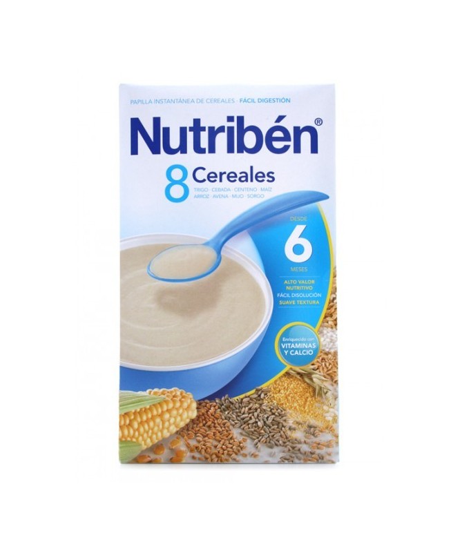 La papilla Nutribén 8 cereales está indicada para los bebés a partir de los 6 meses, momento en el que es necesario empezar a diversificar un poco su dieta y aportar cereales que necesita para su desarrollo, especialmente para su intestino. Este producto ha sido desarrollado a través de un proceso natural, que utiliza Nutribén en muchos de sus productos, conocido como hidrólisis térmica. Esto supone que Nutribén 8 cereales se ha producido sin someterse a ningún proceso químico, lo que le permite mantener todo el sabor de los cereales que contiene. A diferencia de otras papillas del mercado, Nutribén 8 cerealescontiene menos cantidad de azúcares, se disuelve mucho mejor y espesa antes que otros preparados, con lo que se evita utilizar más producto de la cuenta. Además, Nutribén 8 cereales es consciente de la importancia de los cereales en el bebé como elemento básico de su alimentación para dotarle de mayor energía.