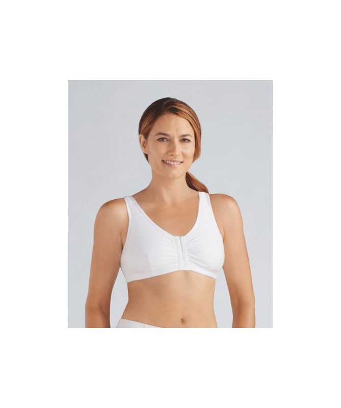 Amoena Frances es un sujetador suave y cómodo que se utiliza inmediatamente después de la cirugía. Cuenta con cierre frontal para facilitar su uso. El alto contenido de algodón y el bolsillo de algodón suave hacen que el sujetador sea cómodo para pieles sensibles. Los bolsillos de algodón sostienen una preforma o una forma de ocio de forma segura en su lugar. Además, se puede utilizar como sujetador para dormir. Compuesto en 90% algodón y 10% elastano.