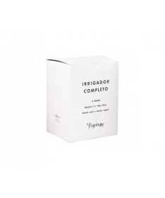 Irrigador completo compuesto por cinco piezas: depósito de 2 l, tubo, llave, cánula rectal y cánula vaginal.