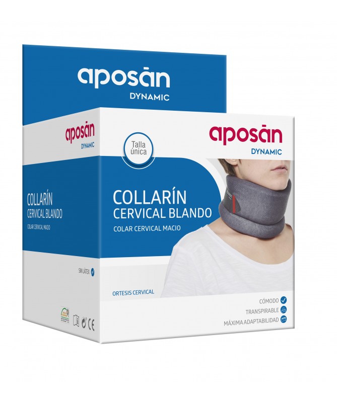 Aposán Dynamic Collarín Cervical Talla Única tiene un almohadillado blando para la sujeción y el soporte de la cabeza a la vez que limita el movimiento del cuello. Elaborado con materiales de primera calidad, sin látex ni sustancias nocivas, alivia la tensión muscular y limita el movimiento de flexo-extensión, ayudando así a controlar los movimientos involuntarios de rotación cervical.
