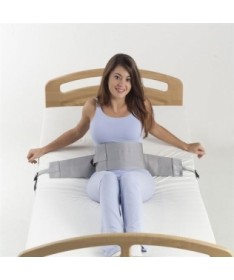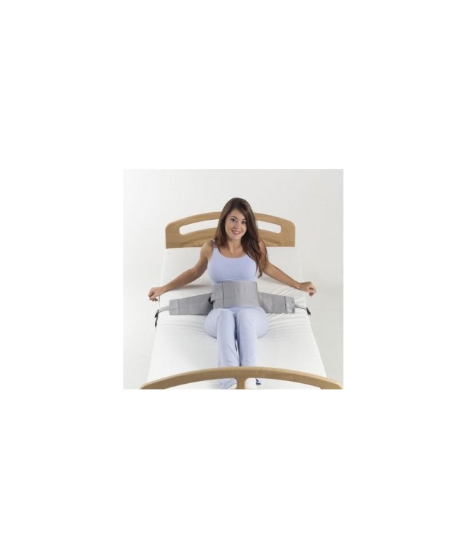 Talla 60-100cm. Indicado especialmente para asegurar la sujeción de personas con facultades psíquicas alteradas y para aquellos casos que se precise la sujeción de pacientes para evitar caídas. No causa molestias ni daños al paciente. Permite mover piernas y brazos, sentarse o girarse lateralmente o puede bloquearse el giro lateral empleando una banda de bloqueo. Este tipo de sujeción se coloca directamente al bastidor de la cama. Fabricado en polipropileno.