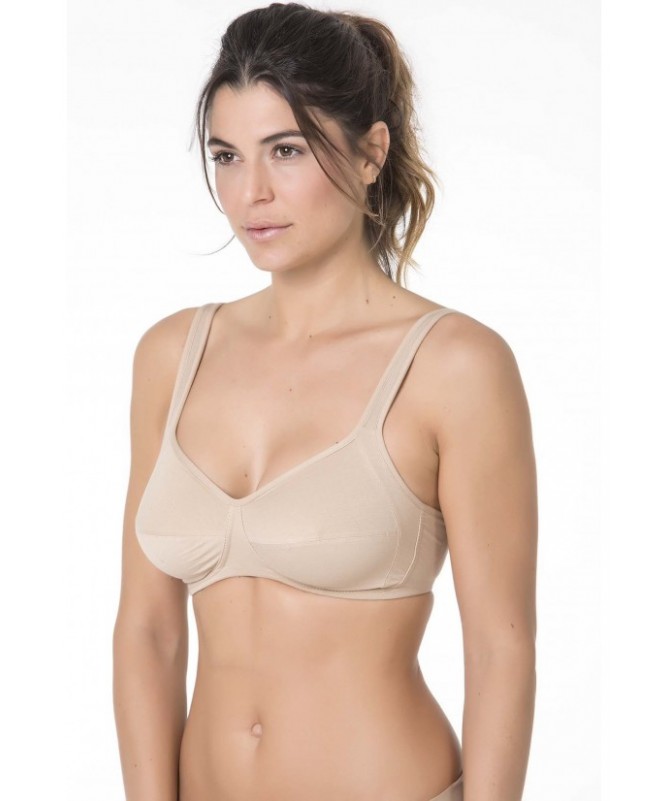 Sujetador de algodón hipoalergénico sin aros. Producto no se devuelve por ser de uso íntimo. Por favor medir bien las tallas. Este producto puede tener una demora en entrega de entre 15 y 20 días naturales.  Pregúntanos por email la disponibilidad: farmacia@tusanibox.com Desarrollado para los procesos de radioterapia o para pieles sensibles a las que cualquier elemento sintético, al contacto con la piel, les deja señales propias de un comportamiento alérgico. Sujetador hecho 100% con materiales hipoalergénicos, con tirantes acolchados y sin costuras al contacto con la piel.