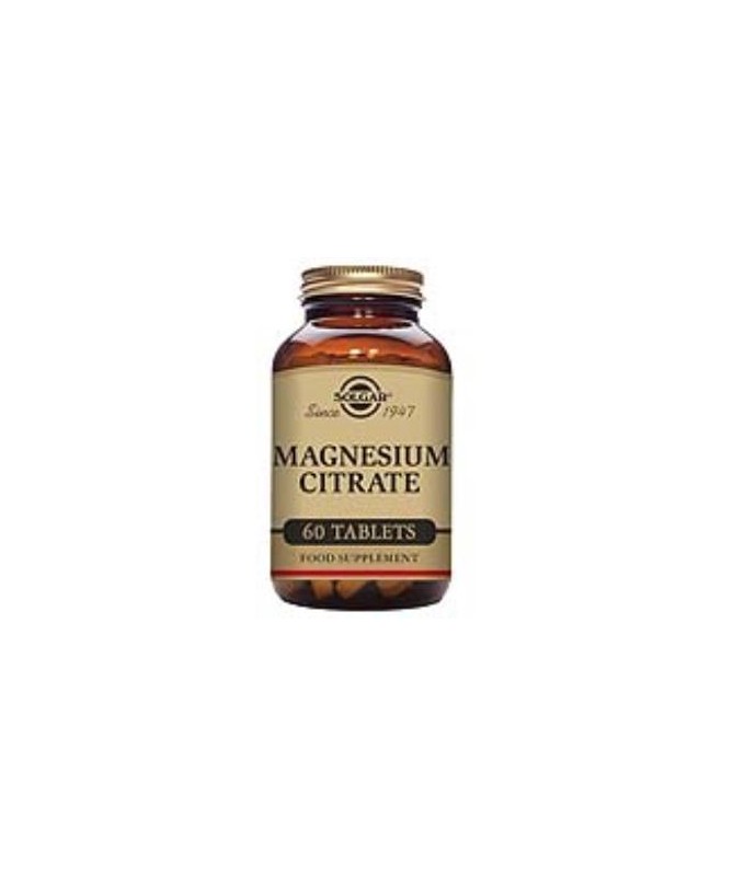 Citrato de Magnesio 60comp. (SOLGAR)  Para una mejor absorción de magnesio. Coadyuvante en la absorción del calcio y de otros minerales, interfiere en los impulsos nerviosos y mantiene en estado óptimo huesos, articulaciones, cartílagos y dientes. Apto para veganos.