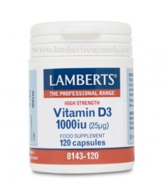 Vitamina D3 1000ui 120cap. (LAMBERTS)  La vitamina D es esencial para unos huesos y dientes saludables, y también es importante para un sistema inmune en buen estado y el funcionamiento normal de los músculos. Además, contribuye al proceso de división celular. En este producto, está presente en la forma natural D3 (colecalciferol), que es la de más fácil absorción.