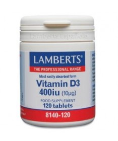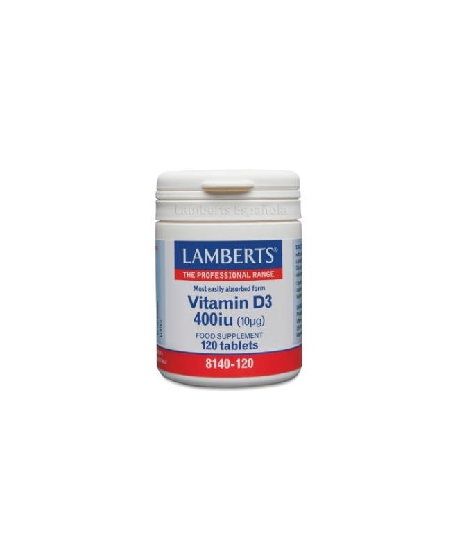 Vitamina D3 400ui 120comp. (LAMBERTS)  La vitamina D es esencial para unos huesos y dientes saludables, y también es importante para un sistema inmune en buen estado y el funcionamiento normal de los músculos.