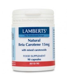 Betacaroteno Natural 15 mg. 90 cap. (LAMBERTS)  Con mezcla de carotenoides, ayuda a la protección de las células contra los daños de los radicales libres, gracias a su acción antioxidante.