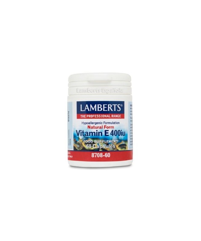 Vitamina E Natural 400ui 60 cap. (LAMBERTS)  La Vitamina E protege a cada célula del organismo contra el estrés oxidativo causado por los compuestos reactivos llamados “radicales libres”. Viene en su forma natural de d-alfa tocoferol, ya que ésta es la forma en la que se produce en los alimentos. Apto para veganos y vegetarianos.